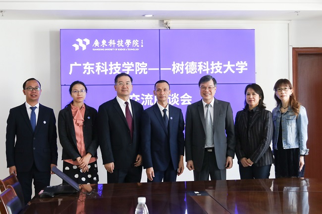 (College of International Education) Ching-Yaw Chen, President of Shu-Te University, Hui-Lin Chiu, Chair Professor of Graduate School and Department of Visual Communication Design, Shu-Fen Dai, Chief of Section of Recruitment and Planning of Office of International and Cross-Strait Affairs visited Guangdong University of Science and Technology (GUST) for communication and cooperation on Nov 28-29.