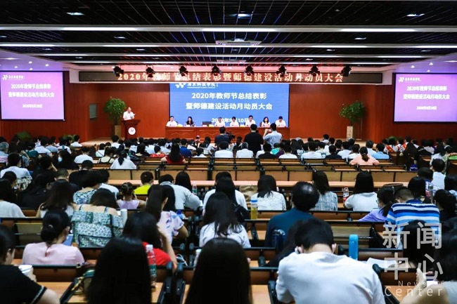 The school leaders awarded certificates of honor to commended teachers and expressed thier hope that teachers will continue to play a good leading role. After the prize-awarding ceremony, president Liang Ruixiong delivered a speech, in which he first extended his greetings of Teacher’s Day to all the school staff, and extended his warm congratulations to the teachers who had achieved outstanding results in education and teaching and who had received awards. At the same time, he extended a warm welcome to the 350 new teachers.