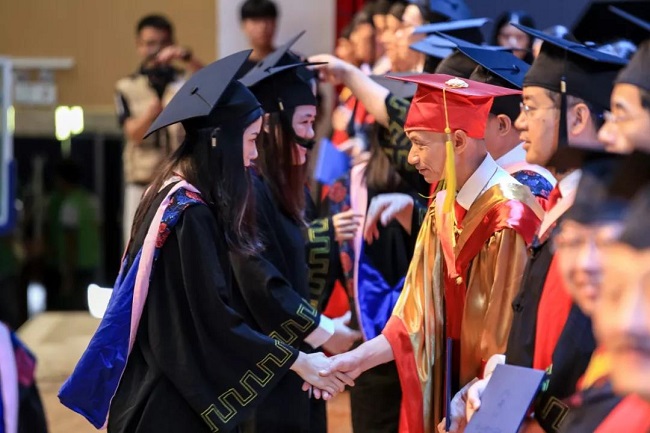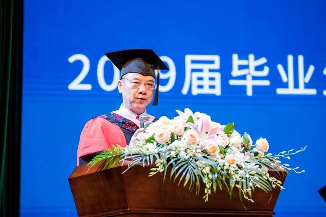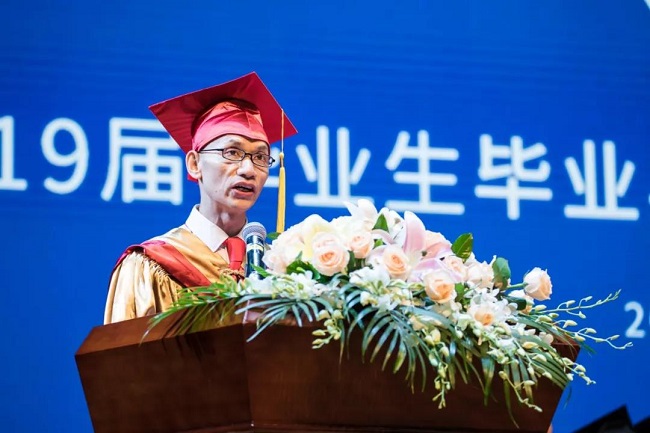 Liang Ruixiong, President of GUST and Chairman of Academic Degree Evaluation Committee, delivered a speech "Remember your original dream and move ahead practically." President Liang, on behalf of GUST, expressed his sincere thanks to teachers who had been working hard to cultivate graduates and students' relatives who had been caring for them. He also extended warm congratulations to students who were graduating from GUST.