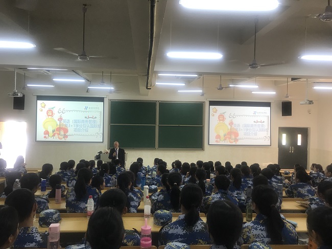 (College of International Education)Dr. Simon Evans and Ms. Helen from Anglia Ruskin University(ARU) visited our school, met with the students from the Sino-British 3+1 International Class, answered their questions related to the program at Nancheng campus, and then held four public lectures on the program for the 2019 freshmen from the College of Foreign Languages at Songshan Lake campus on Sept. 26-27.
