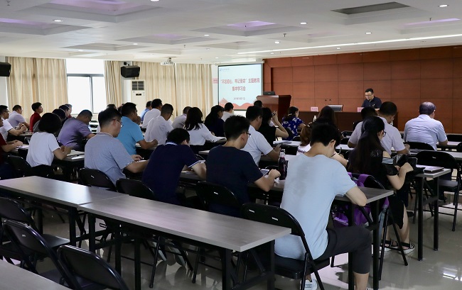 A seminar on the theme of "Do not forget the original heart, keep in mind the mission" was held in the lecture hall on the 8th floor of the administrative building of Nancheng Campus on the afternoon of October 11th. School Party Secretary Wu Nianxiang, President Liang Ruixiong, Party Committee Member and Vice President Wang Yanbin, Party Committee Member and Vice President Zhao Huihua, all middle-level cadres, grassroots party organizations secretaries, secondary school teaching and research assistants and academic assistants attended the meeting. The meeting was chaired by Bi Huidong, the directer of the Department of Party Affairs.